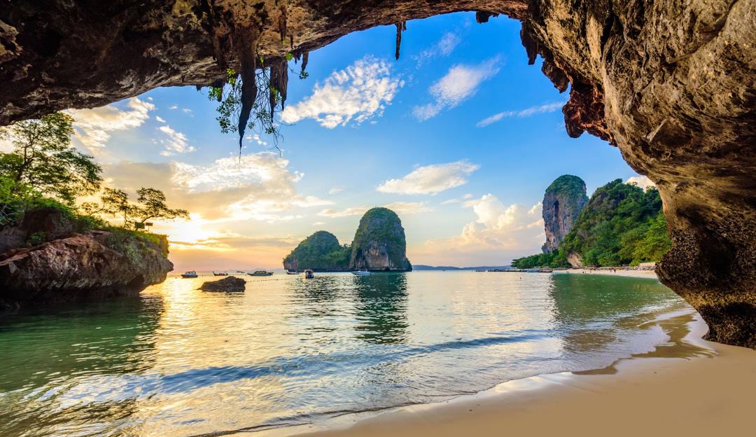 Phra Nang Cave Beach – Located on the Railay Peninsula, famous for its picturesque limestone cliffs and Princess Cave, where locals leave offerings for good fortune.